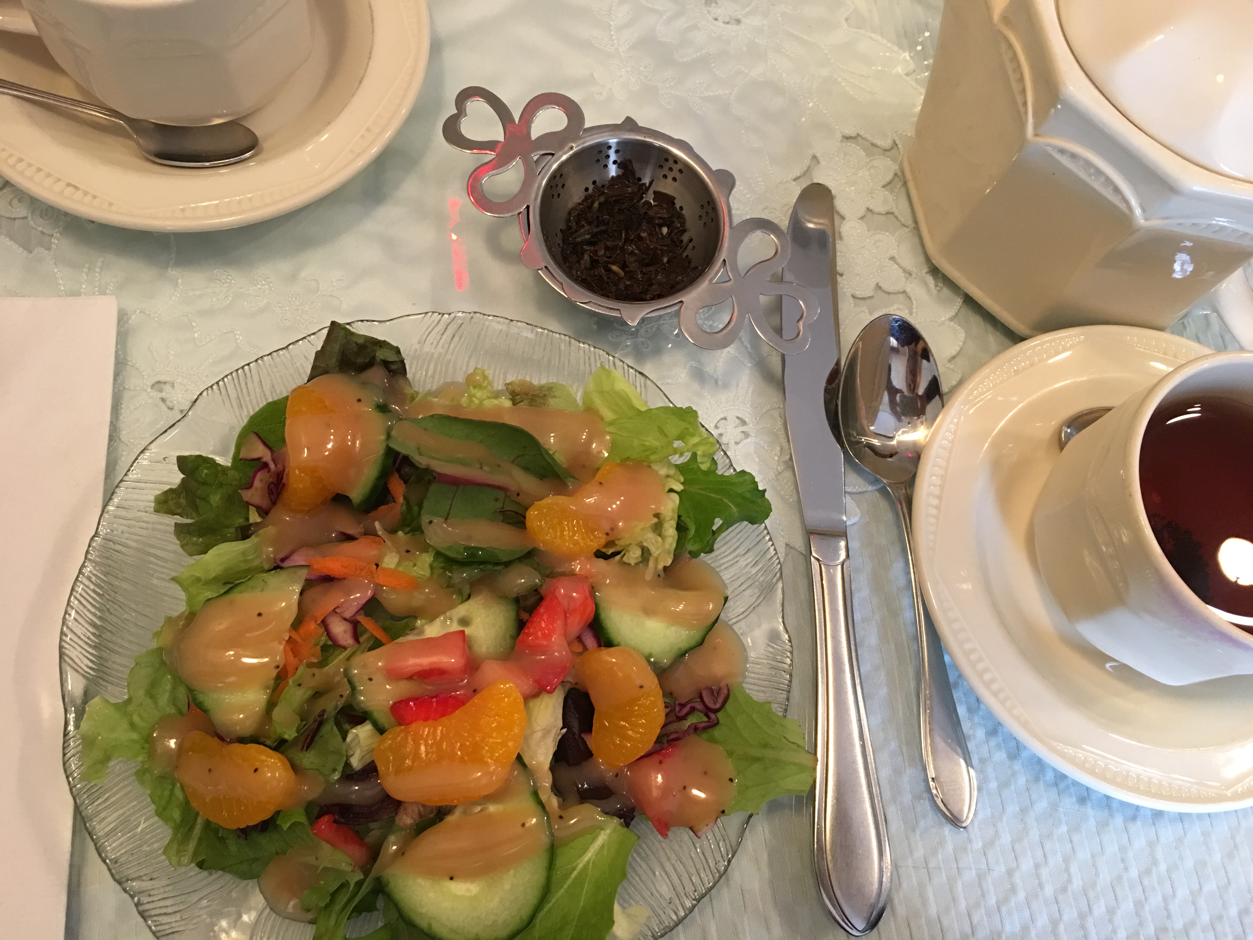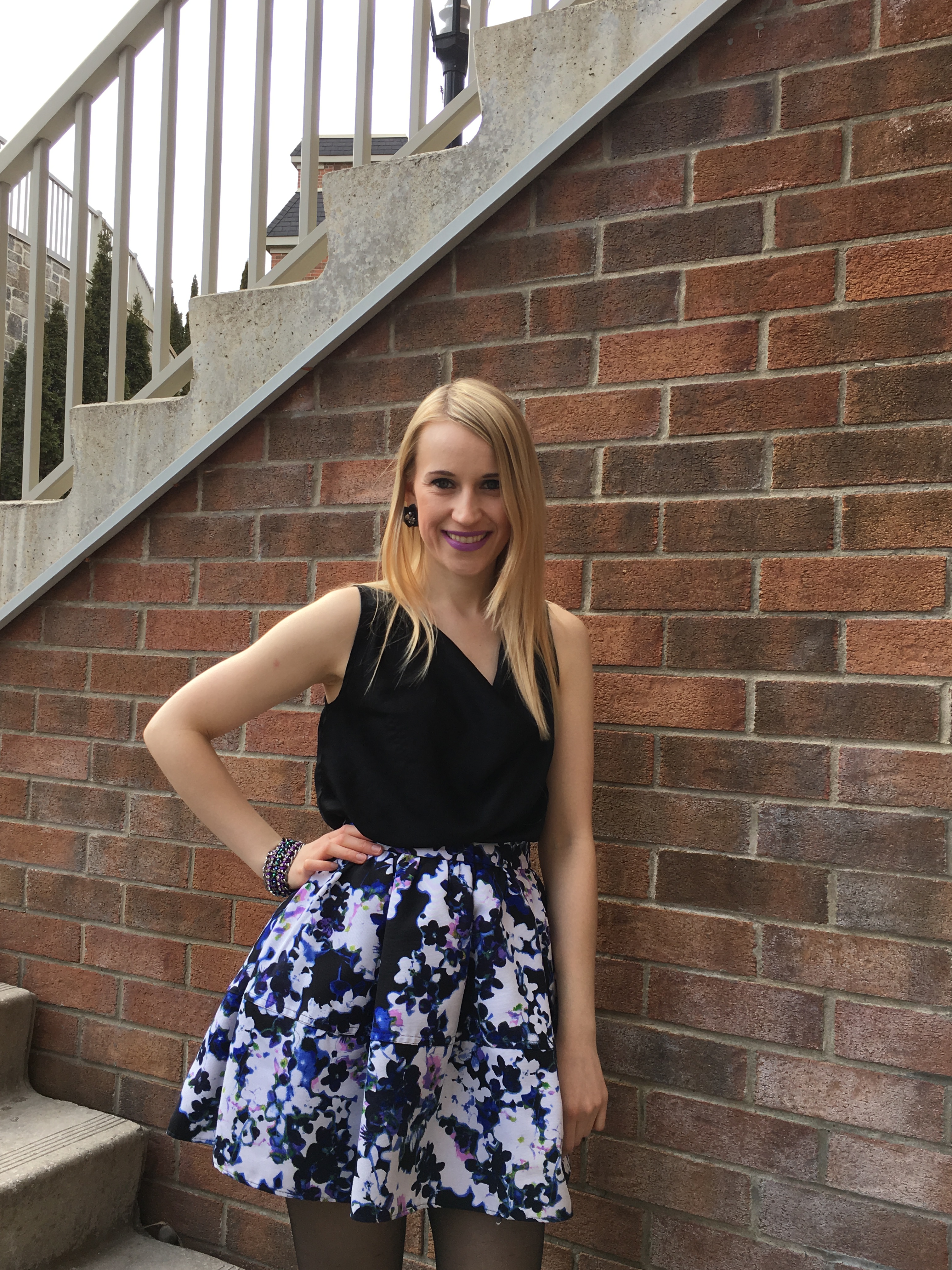 This afternoon tea outfit was probably a bit too naked for the winter (even with the cardigan). But I adore this flower skirt! The cut of this skirt is perfect for me; I have around three of the same style from Express. I feel like a doll in it and bonus: it has pockets!